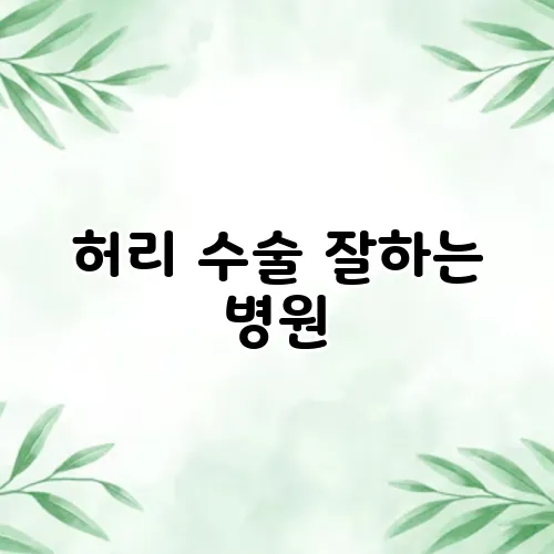 허리 수술은 많은 분들에게 삶의 질을 크게 향상시킬 수 있는 중요한 결정입니다. 하지만 어떤 병원을 선택하느냐에 따라 수술의 성공률과 이후의 관리가 달라질 수 있습니다. 그래서 우리가 함께 믿을 수 있는 병원을 찾아보는 시간을 가지면 좋겠습니다. 허리 수술에 대한 정보를 찾는 것은 복잡할 수 있지만, 적절한 병원 추천과 수술 후 관리를 통해 효과적으로 문제를 해결할 수 있습니다. 본 포스팅에서는 허리 수술을 잘하는 병원의 선택 기준과 추천 치료법 및 후유증 관리 방법에 대해 알아보겠습니다.