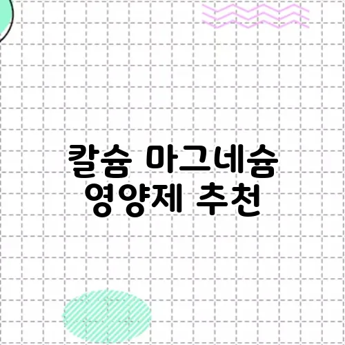 시장에는 다양한 영양제 추천 브랜드가 존재합니다. 신뢰할 수 있는 브랜드가 만들고, 적절한 비율로 칼슘과 마그네슘을 혼합한 제품을 선택하는 것이 좋습니다. 예를 들어: